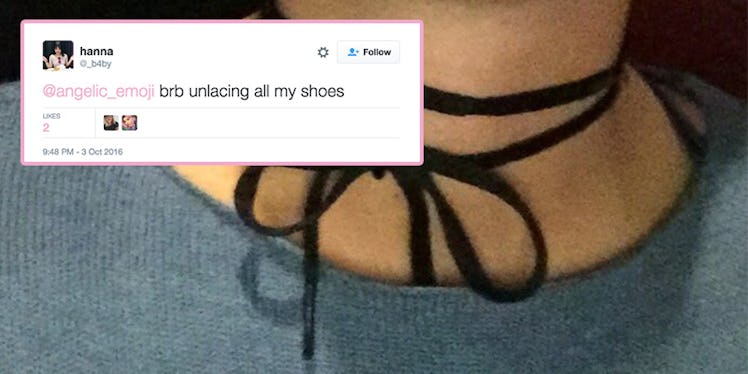 Citations: The internet is feeling so many feelings about this girl wearing a shoelace as a choker (Hello Giggles)