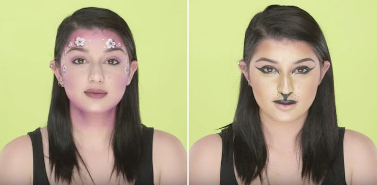 Nairie Aintablian is an LA-based special-effects makeup artist who created Snapchat-inspired looks in her latest makeup tutorial. These looks, based off the Electric Daisy, Strawberry and Golden Feline filters, are so close to the originals I have to wonder if she's the person who actually designed the filters for the app herself.