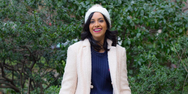 Since you're showing off a lot of a leg, you want to be conservative on top to even it all out, so wear a shirt that isn't too cleavage-baring, like this Topshop V-neck. For a nighttime look, just switch out the black on top for white. Complete your princess look with ballerina flats and a simple gold choker, because that's the perfect amount of regal.