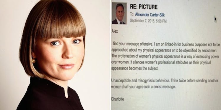 Offended by the married solicitor's use of the professional site for fielding looks-based comments, Proudman responded publicly to Carter-Silk's message.